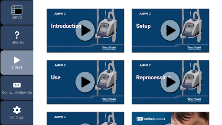 Hyödynnä sovelluksen monipuolisia oppimisresursseja, jotka on luotu tukemaan käyttökokemustasi. Kattavat opetusohjelmat johdattavat sinut AIRVO 2:n perusteisiin vaihe vaiheelta, varmistaen vankan pohjan laitteen käsittelyyn. Lisäksi lyhyet, selkeät videoklipit demonstroivat laitteen toimintaa käytännössä, auttaen sinua visualisoimaan ja omaksumaan monimutkaisemmatkin toiminnot vaivattomasti. Tämä on erinomainen työkalu niin uusille käyttäjille kuin kokeneemmillekin ammattilaisille, jotka haluavat päivittää tai kerrata tietämystään Fisher & Paykel Healthcare:n edistyksellisestä teknologiasta.