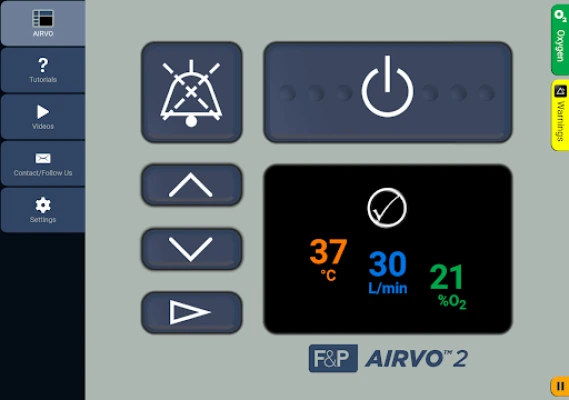 Tämä sovellus simuloi Fisher & Paykel Healthcare -yhtiön AIRVO 2 -laitteen käyttöliittymää. Se auttaa sinua oppimaan vuorovaikutteisesti, miten AIRVO-laitteen uusin versio toimii. Tutustu laitteen toimintaan ja ominaisuuksiin perusteellisesti.