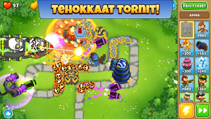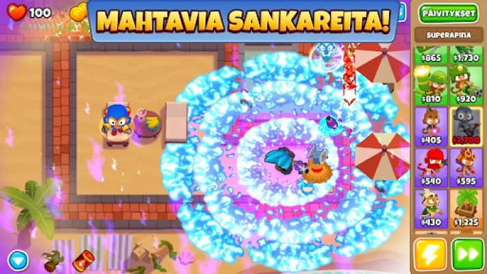 Suunnittele nerokas puolustus yhdistämällä tehokkaita apinatorneja ja mahtavia sankareita pysäyttämään kaikki hyökkäävät bloonit. Tässä strategisessa tornipuolustuspelissä kehität taktiikoitasi jatkuvasti ja kohtaat uusia haasteita varmistaen jokaisen voiton. Valmistaudu eeppisiin taisteluihin!