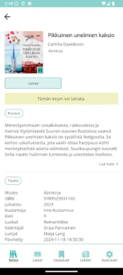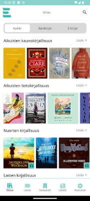 E-kirjasto-sovellus avaa portin tuhansiin maksuttomiin e- ja äänikirjoihin sekä digilehtiin. Selaa aineistoja suomeksi, ruotsiksi ja englanniksi. Lainaa sisältöä kahdeksi viikoksi ja unohda myöhästymismaksut, sillä palautus hoituu automaattisesti. E-kirjasto tekee lukemisesta helppoa ja nautinnollista.