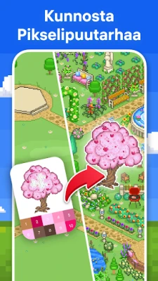 Pixel Artin elävässä universumissa koet jatkuvaa uudistumista. Päivittäiset lisäykset takaavat, että löydät aina tuoretta väritettävää, pitäen luovan inspiraation yllä. Tutustu upouuteen Kukkatarha-ominaisuuteen, jossa voit rakentaa ja hoitaa omaa puutarhaasi värittämällä ainutlaatuisia kohteita ja keräämällä palkintoja. Osallistu myös jännittäviin kausitapahtumiin, jotka tarjoavat teemakuvia ja ainutlaatuisia bonuksia, rakentaen kokoelman juhlapyhien ja vuodenaikojen inspiroimia taideteoksia. Entäpä jos muuttaisit omat valokuvasi pikselitaiteeksi? Pixel Art -kameralla voit muuntaa minkä tahansa kuvan numerovärityspohjaksi, ja jopa tutkia kiehtovia 3D-värityselämyksiä.