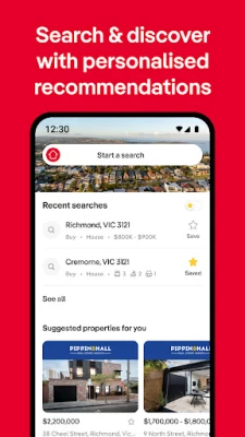 Räätälöi kiinteistöhaut toiveidesi mukaan ja tallenna suosikkisi, jolloin saat välittömiä ilmoituksia vastaavista uusista kohteista. Älykkäät hälytykset pitävät sinut ajan tasalla kiinnostavimpien kiinteistöjesi tapahtumista. Järjestele säästämäsi kohteet omilla kokoelmillasi ja hyödynnä kätevää tarkastusaikataulua, joka auttaa hallitsemaan tulevia näyttöjä ja huutokauppoja vaivattomasti. Tutki markkinaa syvemmin hallituksen tietojen (ACARA) tukemilla koululistauksilla tai lisää omia muistiinpanoja, jotka synkronoituvat `realestate.com.au`-tilisi kanssa. Selvitä asuntolainan takaisinmaksun vaikutukset budjettiisi kattavan laskurin avulla, joka huomioi myös alkukustannukset ja tallentaa tietosi tulevaa käyttöä varten. Voit myös seurata oman kotisi potentiaalista arvonkehitystä luomalla sille profiilin ja saada tekoälypohjaisia suosituksia kohteista, jotka voisivat kiinnostaa sinua.
