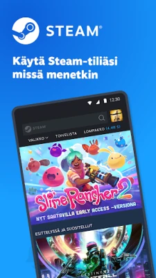 Koe PC-pelaamisen koko laajuus suoraan taskustasi! Steam-sovellus tuo valtavan pelivalikoiman ja alennusten maailman käyttöösi missä ja milloin tahansa. Selaa tuhansia pelejä, löydä seuraava suosikkisi ja hyödynnä uskomattomat tarjoukset reaaliaikaisesti – et enää koskaan jää paitsi kuumimmista alennusmyynneistä. Olipa etsinnässä uusi julkaisu tai ajaton klassikko, Steam-alusta on ulottuvillasi muutamalla kosketuksella, tuoden myymäläkokemuksen saumattomasti mobiilinäytöllesi.