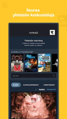 Pelikokoelmasi on aina sormenpäidesi ulottuvilla. Uudistettu kirjastonäkymä tarjoaa vaivattoman pääsyn peleihisi, keskusteluihin, oppaisiin ja tukipalveluihin. Hallitse pelaamiskokemustasi etänä: lataa uusia pelejä tai päivitä olemassa olevia asennuksia tietokoneellesi suoraan puhelimestasi, jotta ne ovat valmiina heti kotiin palatessasi. Lisäksi sovellus yhdistää sinut koko Steam-yhteisöön, mahdollistaen osallistumisen keskusteluihin, ryhmiin ja työpajoihin, sekä yhteydenpidon kavereihisi ja heidän toimintaansa.